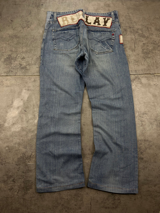 Vintage Replay Y2k Embroidered Denim Straight Baggy Jeans